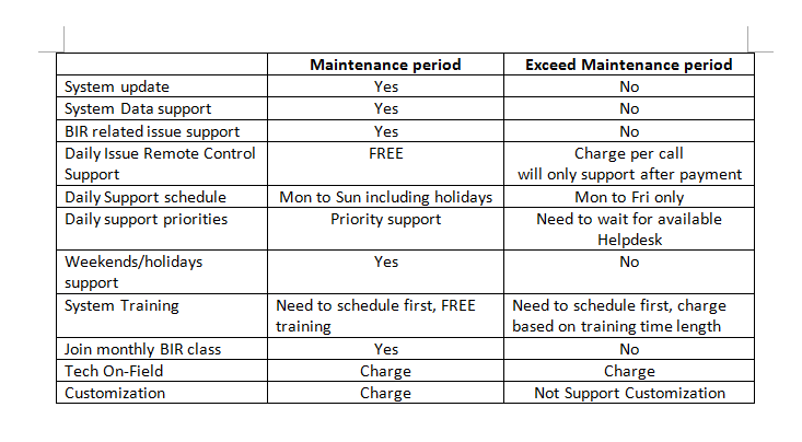 Before March 1, Nelsoft has already been making announcements regarding the strict implementation of the maintenance subscription rules. The rules state that by March 1, the clients who have expired subscriptions will not be supported. The services encompass everything except the issues that are already existing before March 1. For better understanding here is a sample table of the services blocked when clients have expired subscriptions.